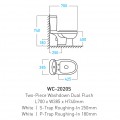 Satinel Water Closet Two Piece Washdown Dual Flush WC-2020S (L700 x W385 x H740mm)